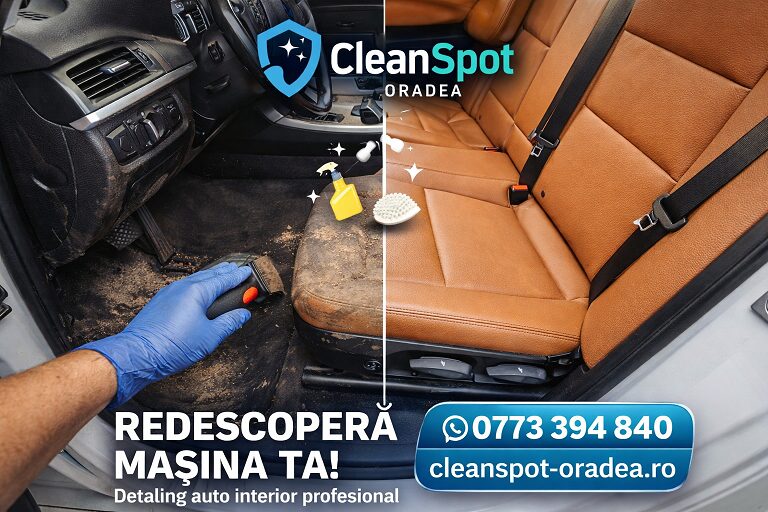 Dacă te întrebi cât costă o curățare tapițerie auto în Oradea, răspunsul depinde de starea interiorului și tipul materialelor (textil, piele sau vinilin). La Clean-Spot Oradea, folosim un proces profesional complet: spălare tapițerie textilă, curățare în profunzime, igienizare, hidratare și protecție pentru piele și vinilin, astfel încât interiorul mașinii tale să fie nu doar curat, ci și protejat pe termen lung. Rezultatul? Fără mirosuri, fără bacterii, cu un aspect vizibil îmbunătățit încă din prima zi.